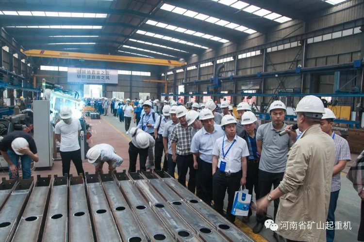 24日下午,河南礦山迎來了多批重要的客人,國家質檢總局特種設備局相關領導,中國重型機械工業(yè)協(xié)會相關領導、重機協(xié)會橋式起重機委員會300家會員單位和全國800家起重裝備整機制造商、配套件制造商及服務商分批蒞臨河南礦山,實地參觀考察河南礦山。公司創(chuàng)始人崔培軍、總經(jīng)理任海濤分別接待,并熱情的向來訪客人介紹了公司概況、工藝革新及機器人換人計劃等。