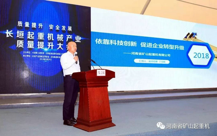 公司質量副總丁玉岐在起重機械產(chǎn)業(yè)質量提升大會上做專題發(fā)言
