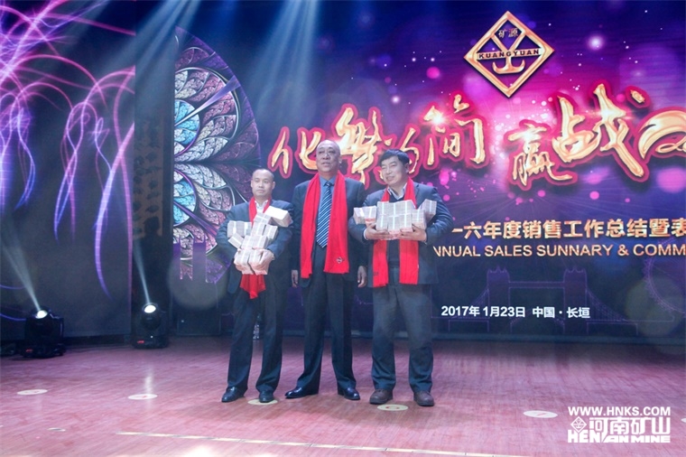 公司黨委書記崔培軍發(fā)表重要講話,他首先向蒞臨現(xiàn)場的各位領導及廣大業(yè)務精英們表示衷心的感謝和新春的祝愿,并指出公司能夠取得今日的成績,皆依賴于各級政府的大力支持、廣大業(yè)務精英的奔波拼搏和全體員工的團結奮戰(zhàn)。他說,自己也是跑業(yè)務出身,深知跑業(yè)務的艱辛,在外受盡白眼,因為公司在生產(chǎn)進度、核價報價、售后服務、手續(xù)辦理、拉車裝車等各個方面存在的不足,他鄭重向大家表示歉意。也正因為如此,河南礦山將不遺余力地推行簡單化管理,把復雜的問題簡單化,把簡單的問題更簡單,努力為廣大業(yè)務經(jīng)理在各個方面提供便利。他提出,河南礦山的企業(yè)根基是孝道,一個人的做人根本也是孝心,什么都可以等,唯獨孝不能等。業(yè)務經(jīng)理們常年奔波在外,回家的時間很少,自己將代替大家盡孝心,明年繼續(xù)帶領大家的父母雙親外出旅游。他總結道,人生重要的是人品,中華民族的文化精髓是“厚德載物”,一個人要贏得別人尊重,核心的品質就是做人厚道,希望大家永遠記在心間。